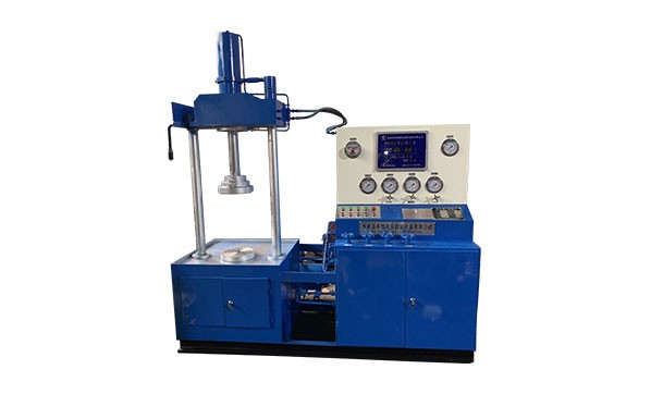设备为立式顶压,上、下工作台各有密封盲板密封,上侧工作台设有进退功能机构,由液压油缸直接驱动实现,使阀门密封面受力均匀,压紧可靠。下工作台固定不动,双向进水,双向排水,密封盘上设有排水、排气阀门,方便气密封试验的检查和对阀门密封面密封情况的观察,具有性能良好,结构简单紧凑等特点。